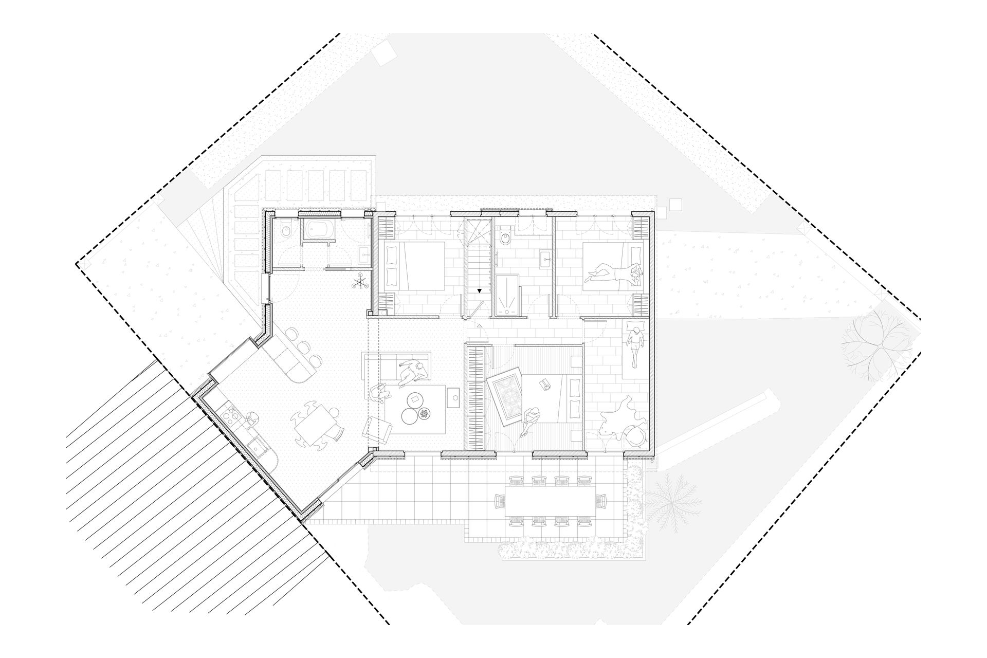 Les propriétaires de cette maison de vacances construite au milieu d’un terrain à l’angle de deux rues au Touquet, souhaitaient gagner de la surface pour être en mesure d’accueillir tous leurs enfants et petits-enfants.